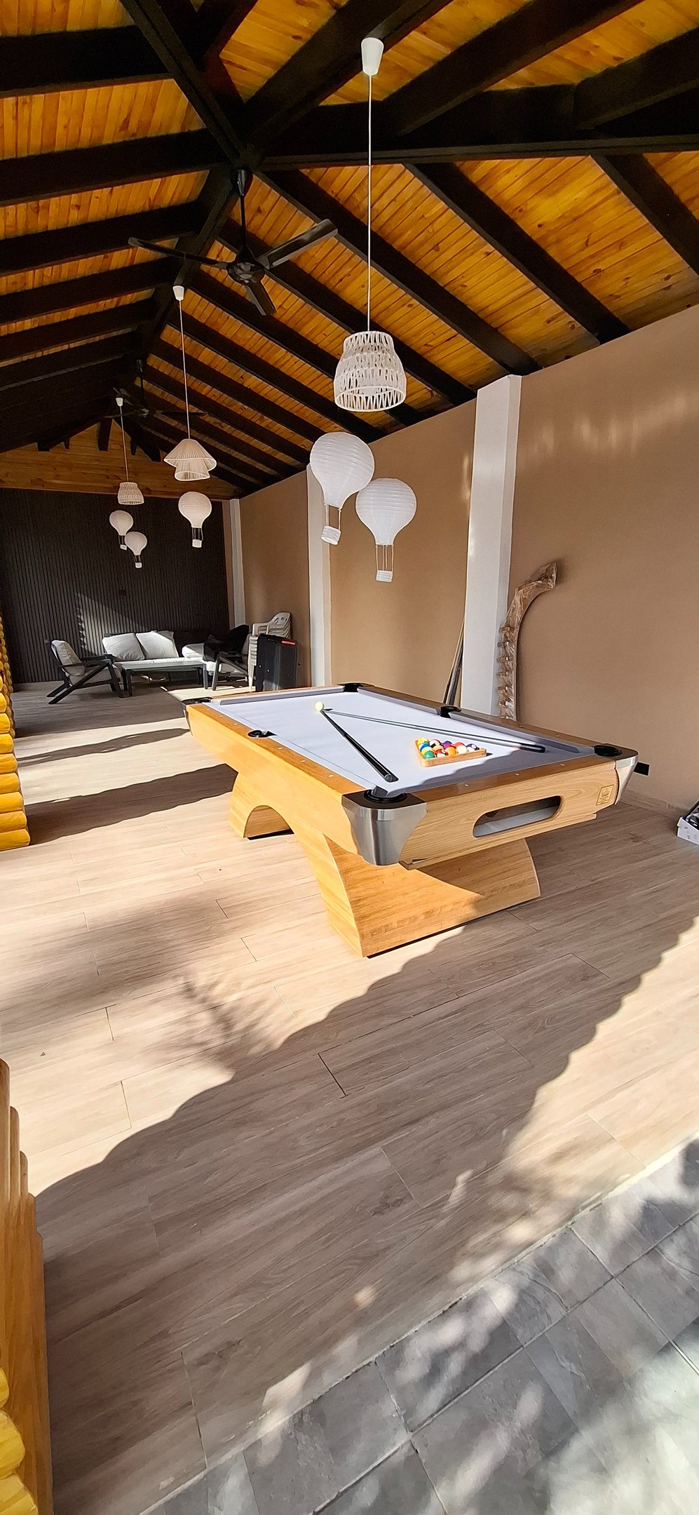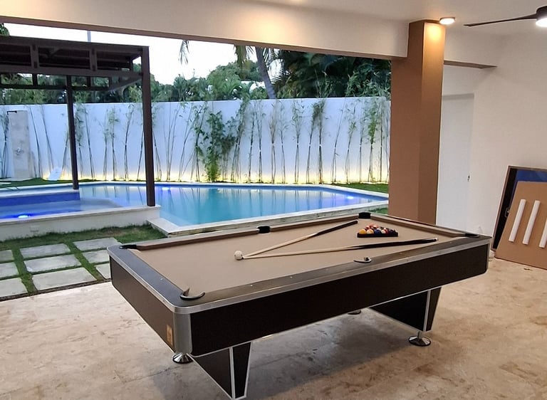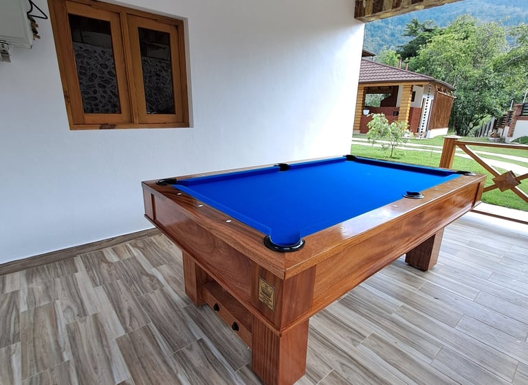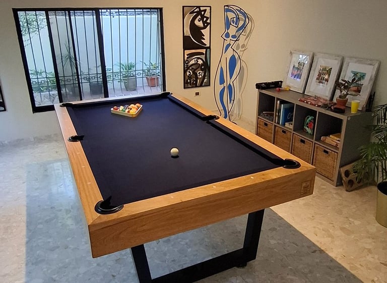 Mesa de billar de estilo clásico y elegante, fabricada con materiales de alta calidad para ofrecer durabilidad, estabilidad y una excelente experiencia de juego. Ideal para hogares, villas o espacios de entretenimiento.