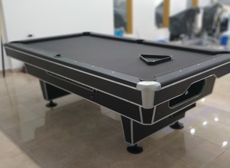 Mesa de billar profesional diseñada para ofrecer precisión, estabilidad y una experiencia de juego de alto nivel. Ideal para negocios, clubes o jugadores que buscan calidad superior.